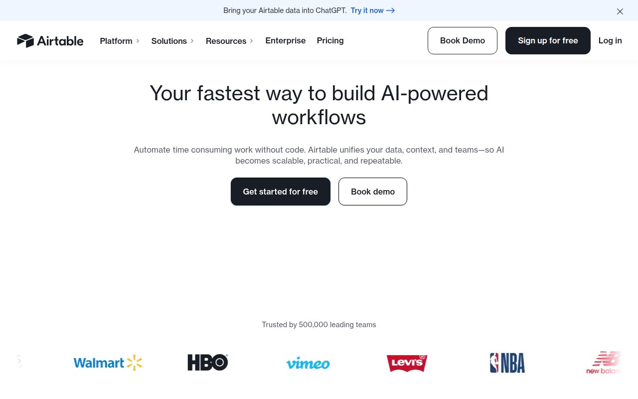 Spreadsheet-database hybrid with AI features. Builds apps, automations, and workflows on top of structured data without code.