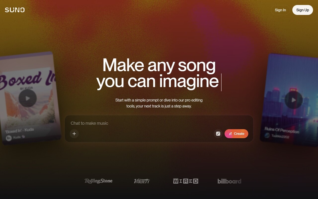 AI music generator. Describe what you want - genre, mood, instruments, tempo - and it creates full songs with vocals and production in seconds.